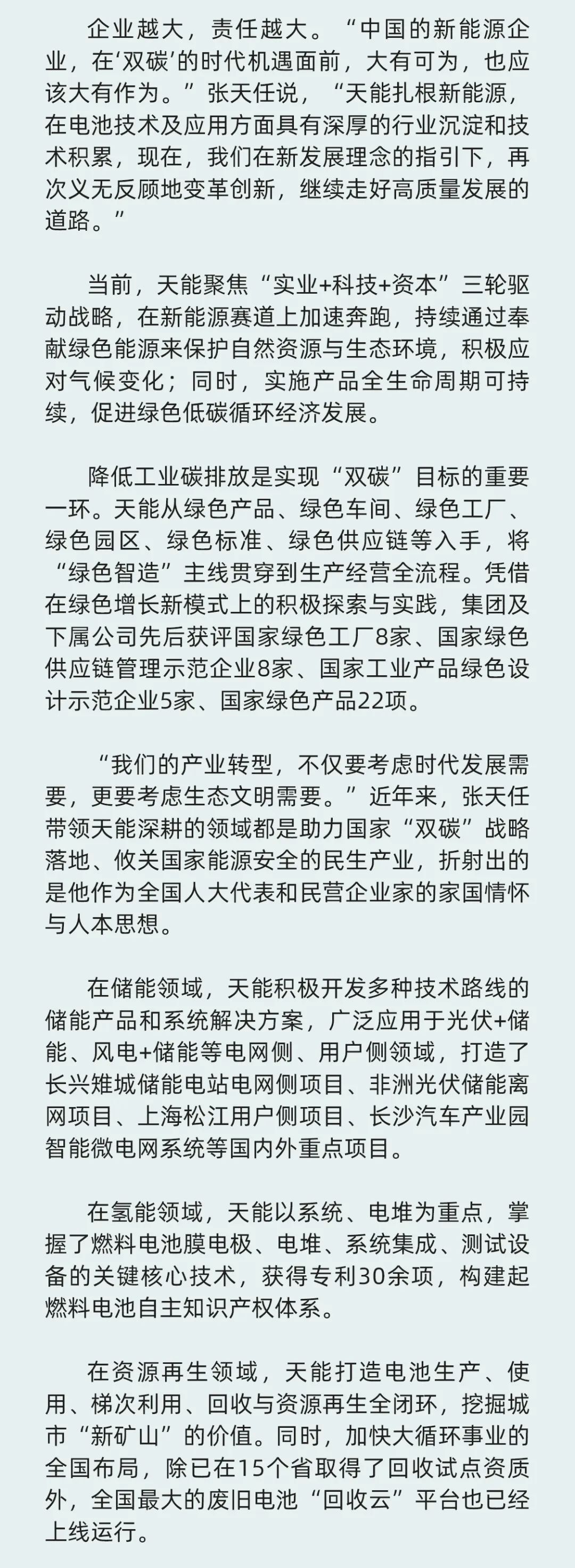 全国“两会”正在进行中,全国人大代表、jiuyou.com控股集团董事长张天任提出了高质量建设新型储能体系、尽快出台强有力氢气补贴、加强回销一体化示范项目推广、鼓励各类电池技术平行发展等具体建议,为推动能源转型,守护绿水青山积极建言献策。